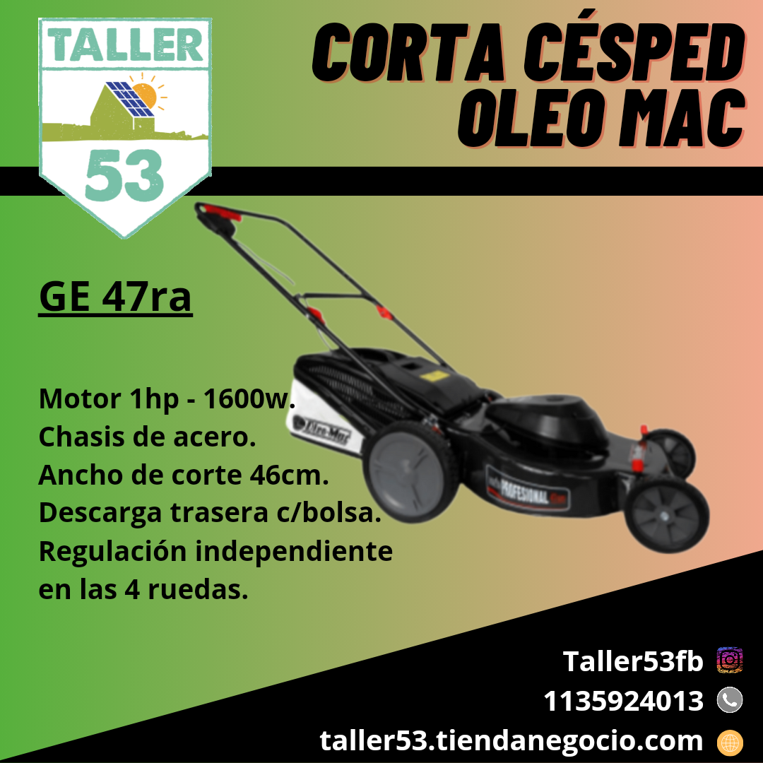 - Descarga: trasera con bolsa de tela/plástico 60 lts.