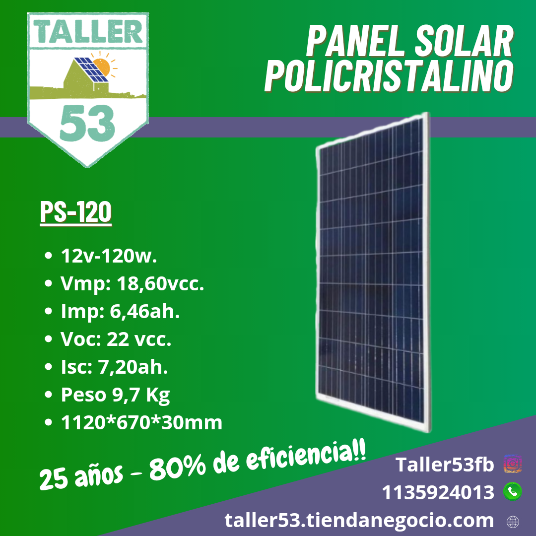 Con construcción robusta y vidrio de alta calidad que reduce la reflexión de rayos solares. Voc: 22.00V / Isc: 7.20A