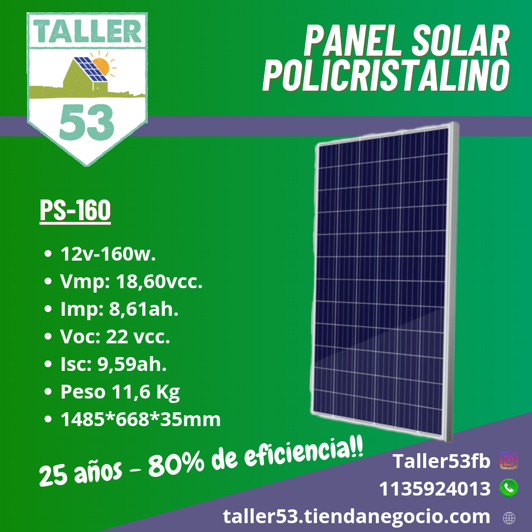 - Celda solar: Silicio policristalino/36 celdas